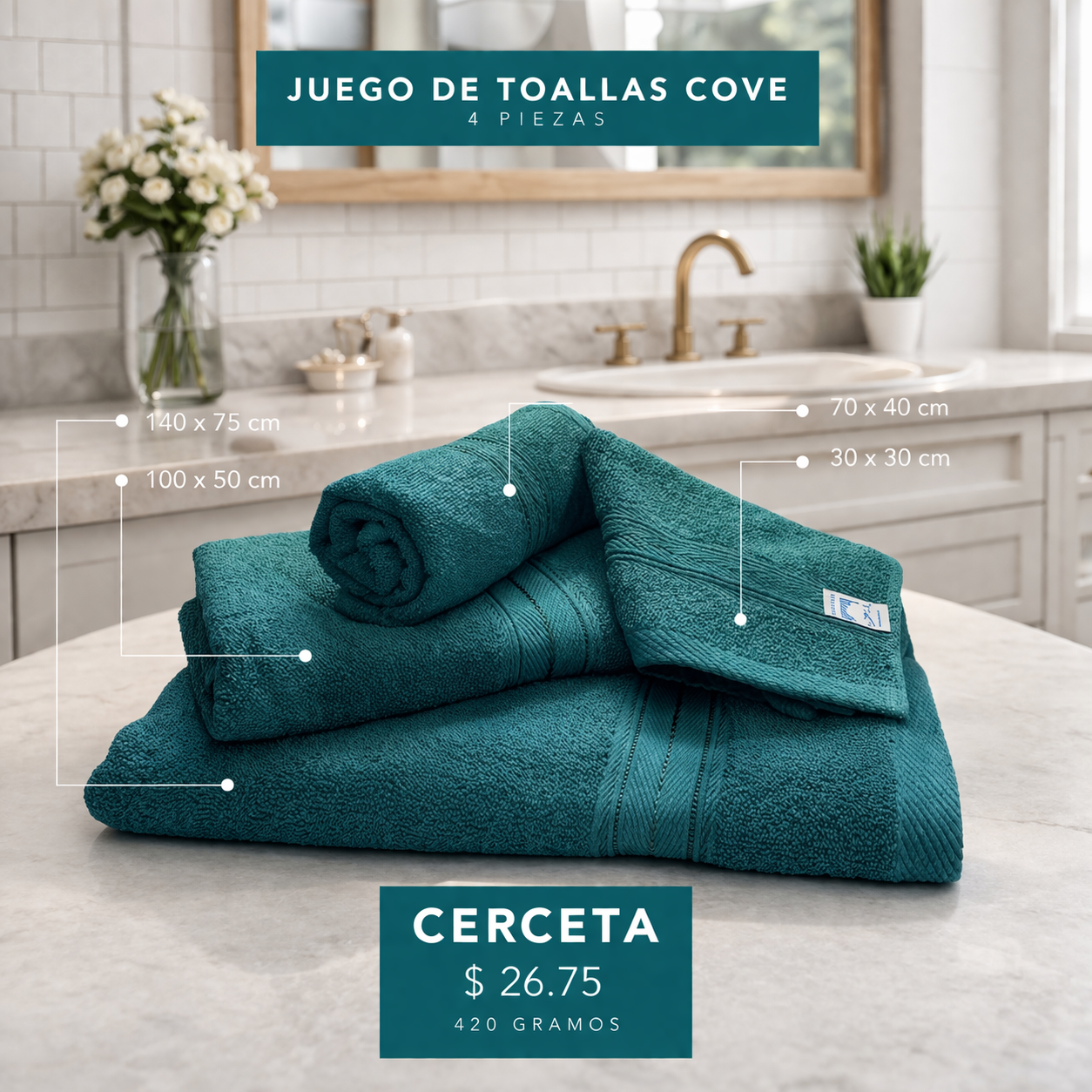 Características: Toalla 100% algodón; 420 gramos
