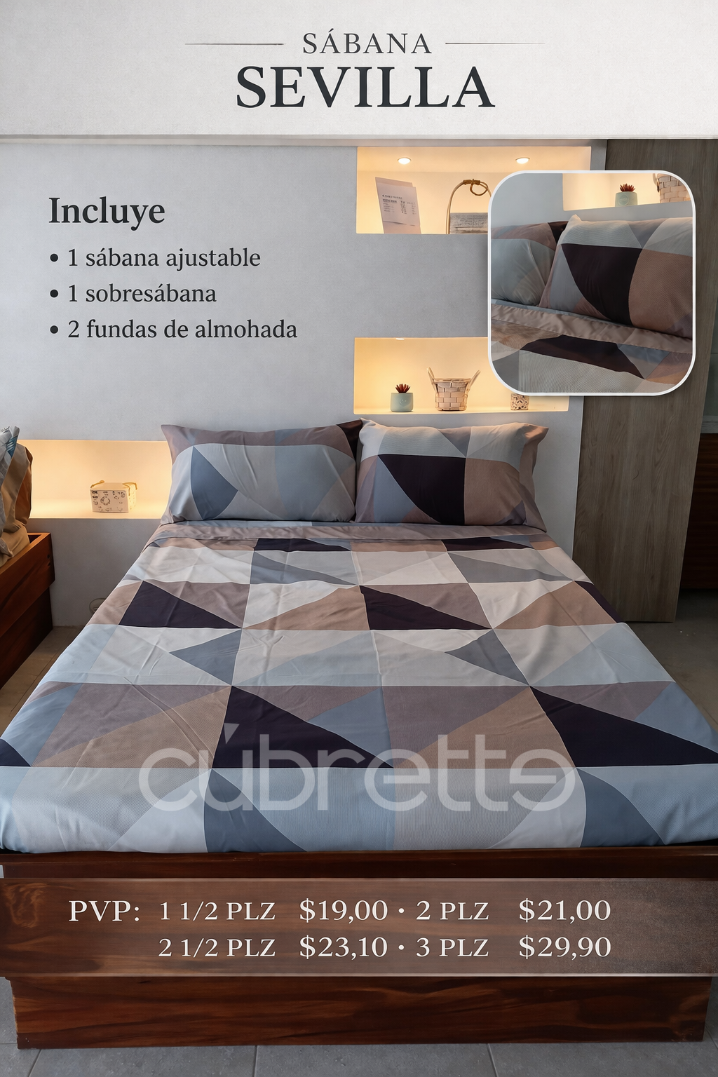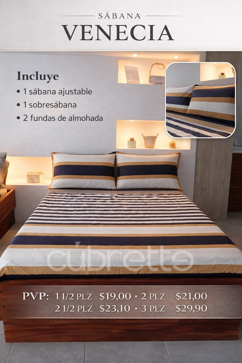 2,60 x 2,50m + 2 fundas de almohada 0,90 x 0,50m